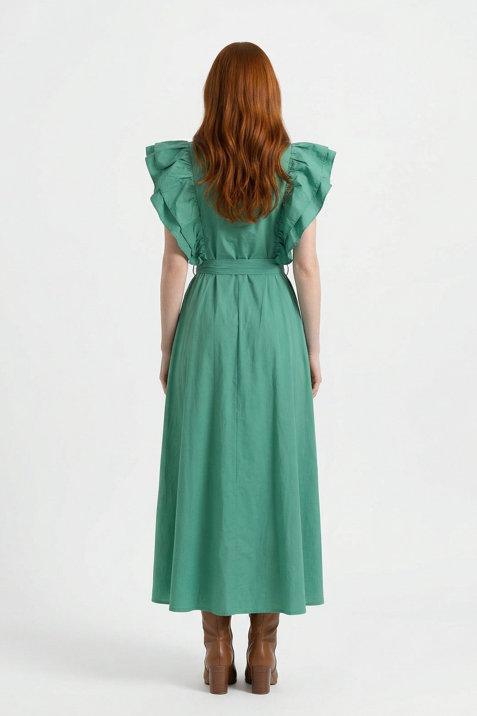 Ispirato a Frida Kahlo, l'abito Frida è un simbolo di raffinatezza e abilità artistica. Realizzato in lussuoso cotone italiano al 100%, presenta maniche con volant a doppio strato, comode tasche e un'elegante cintura in tessuto. Disponibile nei colori verde e celeste, questo abito assicura una vestibilità elegante con opzioni per taglie piccole/medie e medio/grandi. Abbraccia l'essenza dello stile di Frida per ogni occasione con questo pezzo senza tempo.