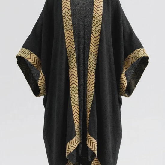 Made from organic cotton, this kimono features a block-color construction with contrasting trims, giving each piece a distinctive, handcrafted character. The breathable fabric offers a soft, relaxed drape. Due to its construction and detailing, gentle hand washing in cold water is recommended. Do not bleach or tumble dry. Lay flat or hang to dry, and store with care to preserve shape and trims.